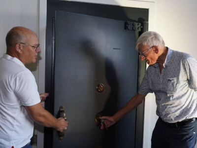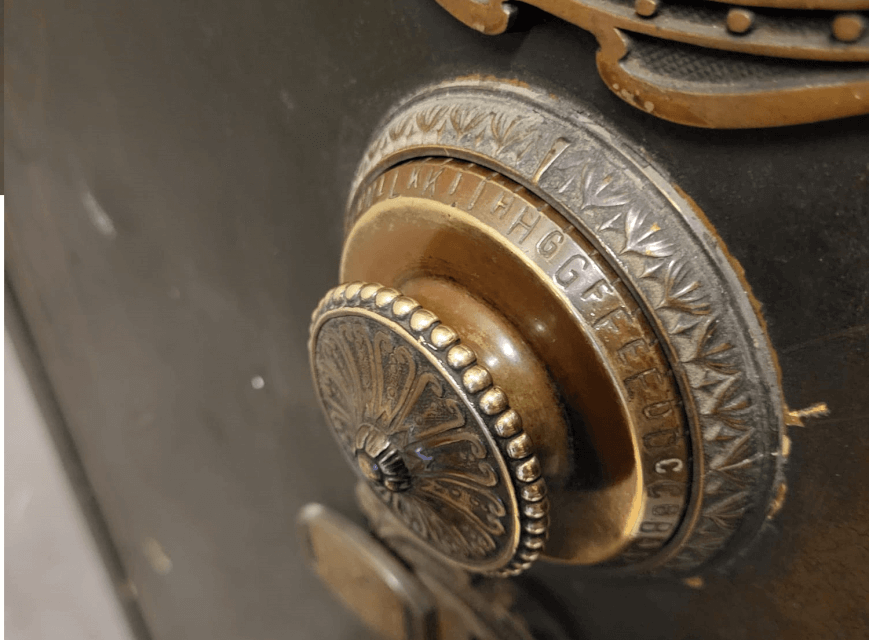 Koos Verbeek, bekend in Poeldijk, had de eer om in bijzijn van Bart van Zijderveld de kluis in De Klok Westland daadwerkelijk te openen. We vonden geen goudstaven, alleen een lege geldlade en een lege tas om briefgeld in op te slaan.